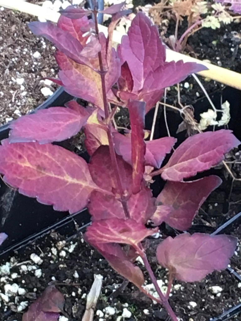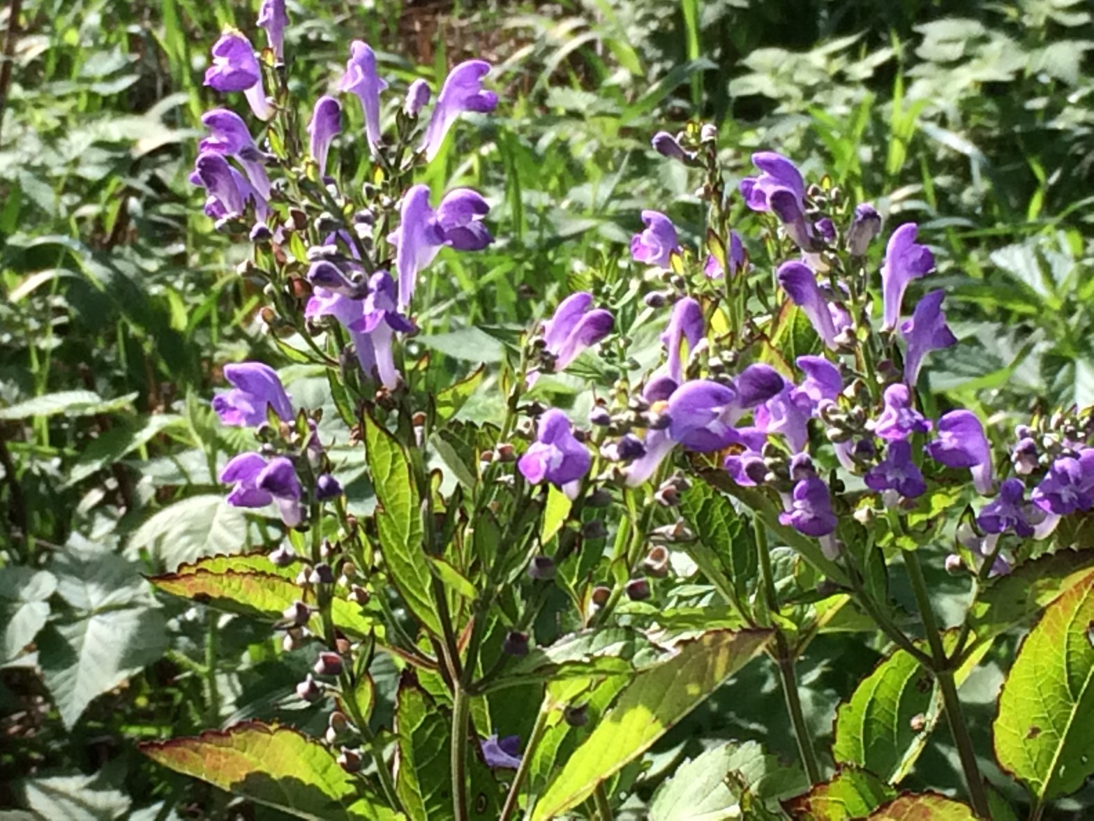 Downy Skullcap, a fine border plant from the eastern USA, contributes nice blue colour and distinctive flower shape to the late summer garden. The summer leaves are edged with dark purple. Purplish pigments suffuse the leaves in the autumn.