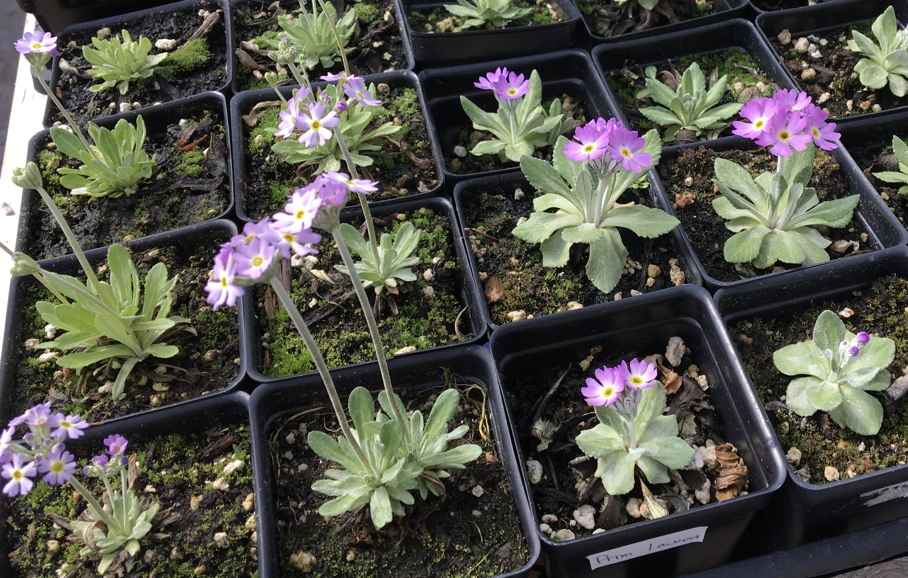 Back in the winter, I showed a picture of two native primroses, Dwarf Canadian Primrose and Bird’s Eye Primrose, as they got ready for winter. Well, here they are in all their spring flowering glory and it is easy to see their different characters. Bird’s Eye Primrose (Primula laurentiana) has larger flowers and broader leaves, Dwarf Canadian Primrose (P. mistassinica) has delightful miniature proportions. I will have some of both to sell at the Rare and Unusual Plant Sale in Ottawa this Sunday.