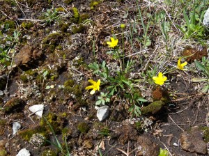 (Ranunculus fascicularis) This cute, low-growing native buttercup carpets the ground on alvars (limestone pavements) in Central Ontario. In the Ottawa Valley, it grows on only one area but it is abundant there. As the photo shows, it can grow where the soil is very shallow. It escapes the searing heat on the rock surface in the summer by going dormant after ripening its seeds in June. Early Buttercup persist on alvars that are grazed because it is avoided by herbivores, and that includes deer.