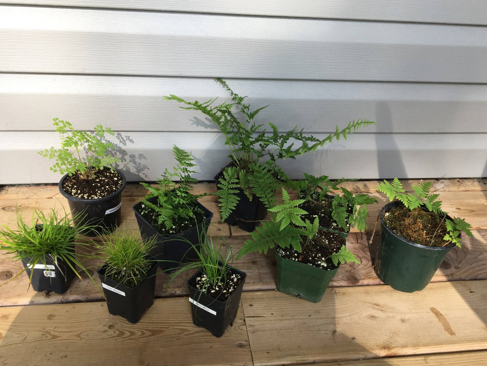 I will be bringing several ferns and sedges for sale at the event. Pictured above (left to right): Front row: Pennsylvania Sedge (Carex pensylvanica), C. eburnea, C. rosea, Northern or Narrow Beech Fern (Phegopteris connectilis), Oak Fern (Gymnocarpium dryopteris). Back Row: Allegheny Fringe (Adlumia fungosa) – not a fern but looking like one in its first year, Spinulose Wood Fern (Dryopteris spinulosa) and Lady Fern (Athyrium filix-femina).