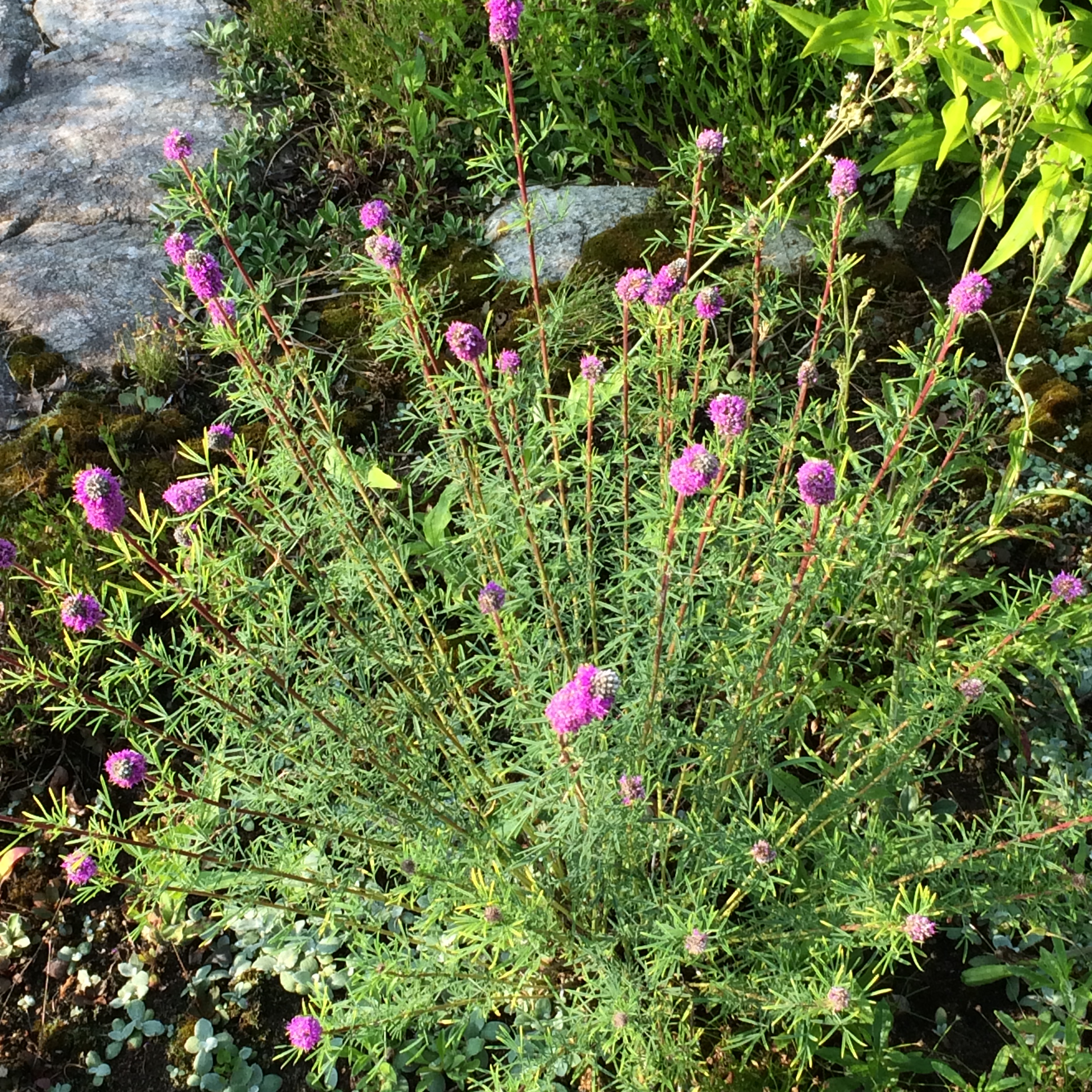 Another necessary meadow species is round-headed bush-clover (Lespedeza capitata). You do want this in a meadow, but it is just not showy enough to justify planting it in a flower border. The flowers are cream and deeply embedded, almost hidden, in the green sepals. The dense brown seed heads of this plant are a nice feature in late autumn, so, yes, enjoy it in a meadow or prairie planting. There are some other, potentially more garden-worthy native Lespedeza. One I have seen, in a wild area south of Hamilton, is violet bush-clover. I think this could be very nice in a larger rock garden and if I can source some seed, I will give it a try.