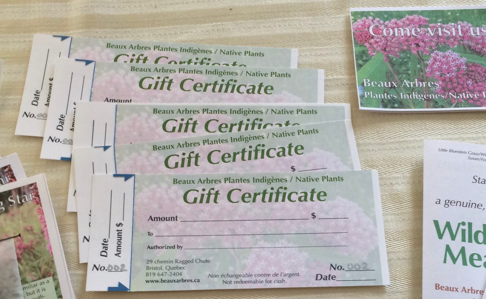 Gardeners love plants. There is nothing a gardener loves receiving more than plants. Of course, when the snow is deep and the ground is frozen, outdoor garden plants are dormant, waiting for spring. Beaux Arbres Native Plants Gift Certificates. Our Gift Certificates can be applied to purchases at the farm, at Plant Sale events such… Continue reading Gift Certificates