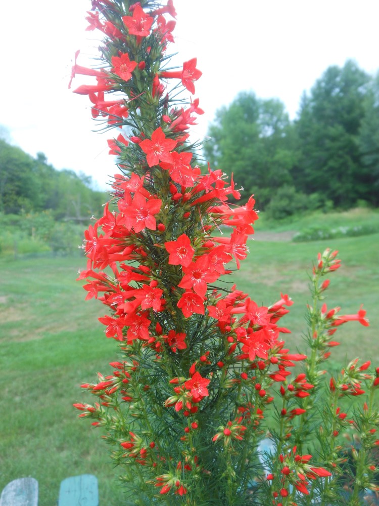 Don’t overlook the easy-to-grow annual vines, such as Scarlet Runner Bean, purple-flowered forms of garden Pole Beans (I like tasty Blauhilde, from William Dam Seeds), and Quamoclit or Cypress Vine (Ipomoea quamoclit). They are often available in inexpensive seed packets at the local garden centre or hardware store and they are effective. Ruby-throated hummingbirds winter in Cuba and summer in western Quebec – they have got to be adaptable and open to trying new food sources along their migration.