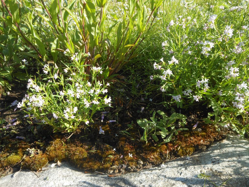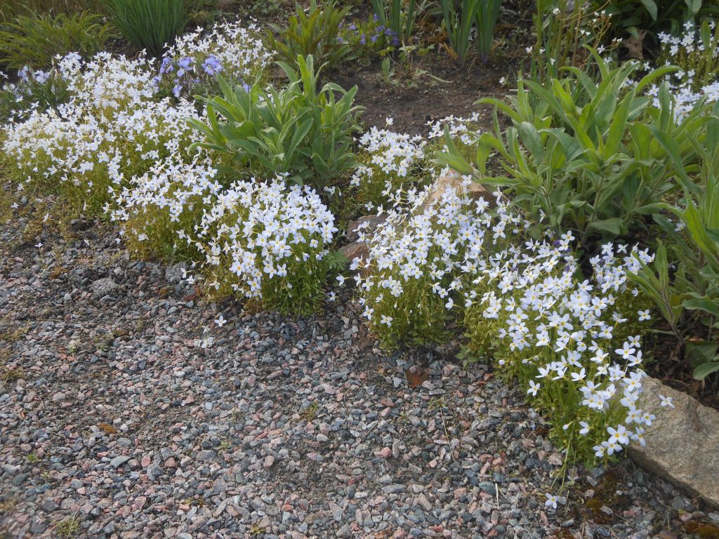 Common Bluets line the gravel path through the Rock Garden.