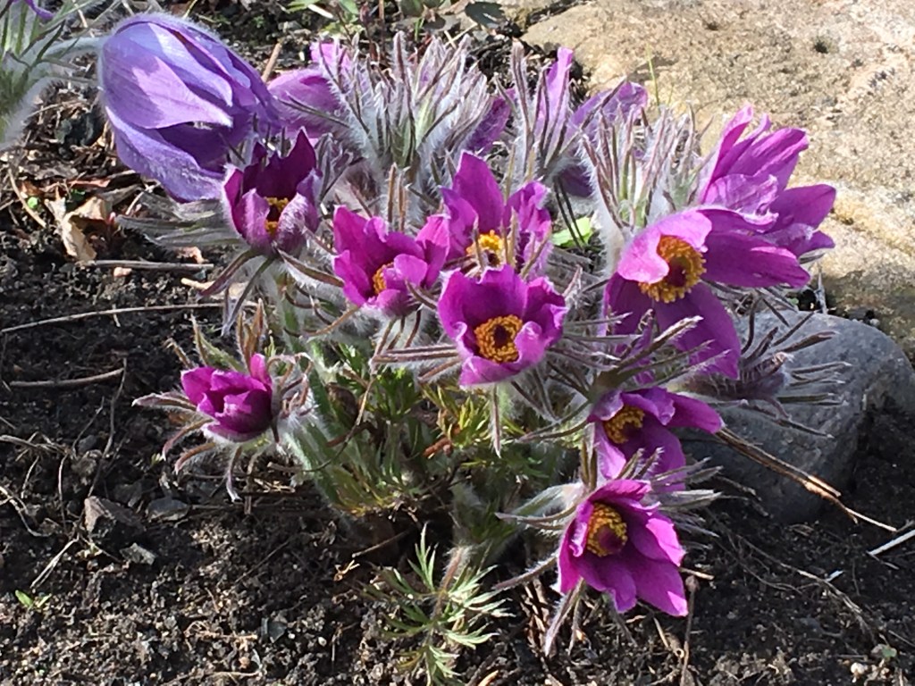 Pasque Flower in the Rock Garden. Not native, but very charming.