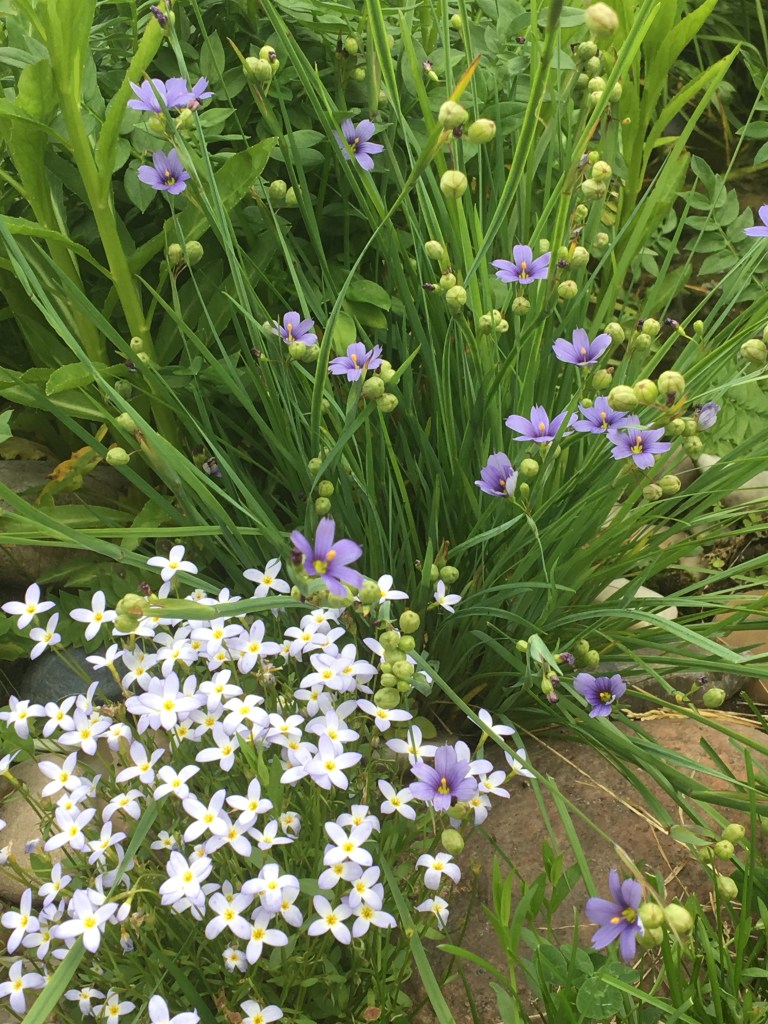 Blue-eyed Grass and Common Bluets in the Rock Garden